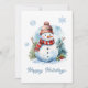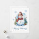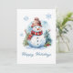 Tarjeta Festiva Muñeco de Nieve Moderno Rojo Azul Blanco Aquarela