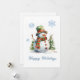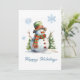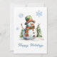 Tarjeta Festiva Muñeco de Nieve Moderno Rojo Verde Blanco Aquarela
