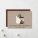 Tarjeta de vacaciones Kraft de muñeco de nieve rústico y hombres de jengibre. Qué forma tan caprichosa de enviar sus saludos navideños a su familia, amigos y socios comerciales. La tarjeta presenta un adorable y primitivo muñeco de nieve campestre junto a un frasco de mason con hombres de jengibre y un ramito de acebo y bayas. La tarjeta es perfecta para artesanos, panaderos o cualquiera que ame lo campestre.