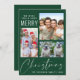 Moderna tarjeta de saludo de vacaciones verdes de temporada con un collage de fotos de 3 fotos, "Te deseamos una feliz Navidad" en combinación de simple tipografía blanca y un elegante guión blanco, y tu nombre y el año.