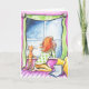Obra de arte original que puedes personalizar con tu propio saludo personalizado. Esta opción personalizado hace de esta una tarjeta de arte única para cualquier ocasión! Ilustracion caprichoso de tinta y lápiz por Andie de Off-Leash Art™ de un chica pelirrojo y su naranja tabby gato mirando por la ventana a un cielo iluminado con estrellas. Arte que cualquier amante de los gatos adorará.