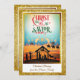 Modern Blue Gold Nativity Scene "Merry Christmas & Happy New Year" Holiday Card
