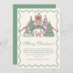 Share the true meaning of Christmas with a gentle, faith-filled design. A hand-drawn nativity rests beneath festive evergreens tied with a soft pink ribbon, framed by a mint scalloped border. “Merry Christmas!” appears above a Bible verse from Luke 2:13–14 and space for your family blessing.