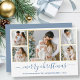 Moderna caligrafía Script Feliz Navidad 5 Tarjeta de vacaciones fotográficas - Marcos dorados - Azul turbio