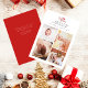 Esta moda elegante pero simple postal de Navidades florales florales de invierno es ideal para todo aquel que quiera mandar los mejores deseos de vacaciones a sus amigos y familia. El diseño moderno y elegante tiene un estilo minimalista y cuenta con cuatro fotos de personalizable colocadas en el collage, una tipografía simple y elegante para tu información, y un guión de moda para un encabezado de "Feliz Navidad" con una cuatrícula de bayas rojas encima. En el fondo rojo invertido, hay un mensaje de personalizable con sus nombres. Utilice el botón "personalizar" para reemplazar fotos y editar texto.