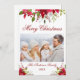 Elegante acuarela Poinsettia Floral Familia Tarjeta de Navidades de fotografía - Guión rojo