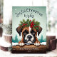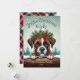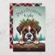 Esta adorable tarjeta de saludo de vacaciones incluye un bonito ilustracion de perro de Boxer con una corona festiva de corona de holly, pino y bayas, con copos de nieve cayendo suavemente sobre el fondo rústico de un bosque de pinos nevados. ¡El Boxer está mirando sobre el tronco nevado para saludar! El lúdico texto "Alegres deseos de Navidades" agrega un cálido saludo estacional, y puede ser personalizado como quieras. El reverso está decorado con un clásico rayo de chapa que añade un toque tradicional al conjunto. Esta bonita y divertida tarjeta es perfecta para enviar vítores de vacaciones a la familia y amigos, y el nombre del personalizable y la fecha lo convierten en un placer personalizado.