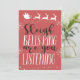 A tus amigos les encantará la diversión y la simplicidad de esta tarjeta de saludo de Navidades de fondo rojo. De "Sleigh Bells Ring are you hear" (El anillo de las campanas de Sleigh está escuchando) tipografía en blanco y negro con silueta de Santa blanca montada en trineos con reno, a esta coqueta e ingeniosa cita, "¿Por qué Dasher y Dancer siempre toman descansos para el café? Porque son los dólares estrellas de Santa. ¡Felices fiestas!" en la parte trasera. *Esta cita es una plantilla que puede conservar o cambiar a su gusto. Los copos de nieve blancos acentúan este diseño.