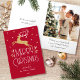 ¡Haga especial la temporada de vacaciones con una tarjeta de felicitaciones con fotos de los personalizados! Este elegante diseño presenta ilustraciones de estilo vintage inspirados en la opulencia de la época Art Deco. Incluye reno en ascenso, hojas festivas y estrellas, junto con una elegante tipografía retro. Personalice la plantilla con su nombre y un mensaje personal. Un diseño único que combina un estilo atemporal con un toque moderno. Colores impresos: rojo profundo, blanco y dorado.