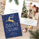 ¡Haga especial la temporada de vacaciones con una tarjeta de felicitaciones con fotos de los personalizados! Este elegante diseño presenta ilustraciones de estilo vintage inspirados en la opulencia de la época Art Deco. Incluye reno en ascenso, hojas festivas y estrellas, junto con una elegante tipografía retro. Personalice la plantilla con su nombre y un mensaje personal. Un diseño único que combina un estilo atemporal con un toque moderno. Colores impresos: azul oscuro de medianoche, blanco y dorado.