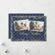 Sorprendentemente, tarjeta de Navidades de fotografía con manchas de oro y búfalo azul con un falso título de letra de caligrafía de Relieve metalizado de oro y Navidades brillantes con luces mágicas en el frente y un fondo negro y azul de búfalo chapado en la parte posterior. Personaliza fácilmente esta brillante tarjeta de Navidades de fotos con tus fotos y nombre de familia.