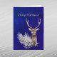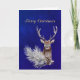 Tarjeta Festiva Navidades Blue Deer Pine Branch Cones Acuarela
