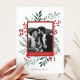 Esta tarjeta de vacaciones completamente personalizable de 1- foto incluye botánicos de invierno de color acuático pintados a mano que enmarcan la foto. Viene con un patrón de coincidencia en la parte trasera y en la sala para escribir un mensaje personalizado. ¿Quieres personalizar aún más? Haga clic en "Editar usando la herramienta de diseño". Este diseño forma parte de una colección. Obra de arte original de la diseñadora Nicole Barreto. Comprar tarjetas de vacaciones y mucho más en www.zazzle.com/store/nbpaperco