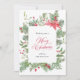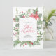 Esta tarjeta de vacaciones cuenta con elegantes botánicos de invierno de acuarela pintados a mano que enmarcan con gusto sus deseos para una Feliz Navidad. Viene con un patrón coordinado de yeso rojo en la parte posterior. Agregue su nombre haciendo clic en el vínculo "Personalizar esta plantilla".