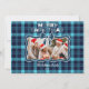 Celebra las vacaciones con un estilo dulce de inspiración retro. Este alegre diseño azul presenta un fondo dorado, un marco esquemático de vieiras y un arco dibujado a mano que le da un toque de fantasía. Con insólitas letras de "Feliz Navidad" con un doodle de color caramelo, irradia un encanto lúgubre y alegría nostálgica. Personalice el nombre de la familia y el año por un bigote divertido y de buen humor que se destaca en cualquier pila. Perfecto para los amantes del rosa, el brillo y un toque de alegría vintage.