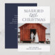 Tarjeta de vacaciones de foto moderna con guión azul para pequeños Navidades casados. Envíe personalizable y saludos personalizados de vacaciones a amigos, colegas y familia en festividades de diseño fotográfico simple, moda, elegante y moderno, tarjetas de estilo minimalista natural! Debajo de la caligrafía se muestra el mensaje de bienvenida de su personalizado en la tipografía moderna.