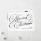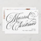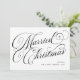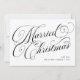 Esta simple tarjeta de vacaciones en blanco y negro para los recién casados dice "Navidades casados" en un guión clásico y elegante de caligrafía con movimientos decorativos y batidos. La parte trasera de la tarjeta incluye una cuadrícula con fotos con espacio para tres fotos, además de un mensaje personal a la familia y amigos. Un aspecto tradicional que se actualiza con una sensibilidad moderna, esta tarjeta es la manera perfecta de mostrar tus fotos de bodas mientras se desea a los seres queridos una Feliz Navidad.
