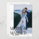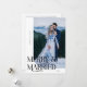 Tarjeta de vacaciones minimalista y elegante para los recién casados que celebran su primera Navidad juntos como marido y mujer, con un texto que dice "Feliz y Casado" encima de tu foto con un rincón curvo.