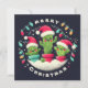 Personalizable ilustracion personalizado divertido de plantas de cactus machacadas Usando sombreros Santa rodeando mi nieve circular, caroling. Las luces de las cuerdas cuelgan de encima.