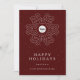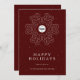 Envíe los saludos de la temporada con estilo con esta plantilla de tarjetas de vacaciones de Navidades corporativos con fondo rojo, elegante diseño de copos de nieve blancos y el logo de su empresa personalizado en el centro. Perfecto para empresas que deseen difundir alegría de vacaciones a clientes, proveedores y empleados, con elegantes tipos de letra serif, un mensaje personalizado de "Happy Holidays" en la parte delantera y espacio en la parte posterior para una nota de personalizado y su sitio web (también puede eliminar el mensaje en la parte posterior si no es necesario).