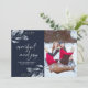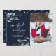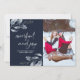 La tarjeta festiva incluye elementos botánicos acuarelas y confeti de nieve blanco sobre un hermoso fondo azul medianoche. Comodidad y alegría caligrafía de pincel y tu foto favorita completan esta encantadora carta.