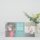Oh, venga, déjennos adorarle... Personalizar esto con dos fotos, año, apellido y un saludo personal.