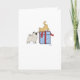 Cute Keeshond Puppy y Navidades Kitten Card. Un cachorro agudo mirando a un gato naranja en un paquete de Navidades. El saludo interno dice "Feliz Navidad". El mensaje puede ser personalizado con tu propio sentimiento. Una adorable tarjeta de Navidad para los amantes del perro.
