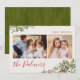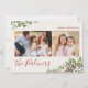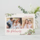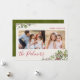 Envíe Navidades a su familia y amigos con esta tarjeta festiva de vacaciones. Este sencillo diseño de tarjeta de Navidades tiene un collage de tres fotos en la parte delantera, acompañado por un elegante diseño de ramas vacacionales acuáticas, y un patrón de rayas acuáticas en la parte posterior. El estilo moderno y minimalista hará que las fotos familiares brillen.