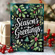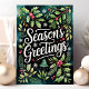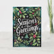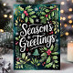 Envíe sus cálidos deseos de vacaciones con esta hermosa tarjeta de "Saludos de temporada". Con un arreglo exuberante de ramas, bayas y copos de nieve holandeses, esta carta captura la esencia de la temporada festiva. Perfecto para compartir alegres saludos con la familia, amigos o compañeros de trabajo, esta tarjeta le dará un toque de alegría a cualquiera.
