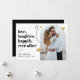 Celebre su feliz eternidad después con esta elegante tarjeta de fotos boda de Navidades. Con un diseño moderno con un toque de fantasía, esta tarjeta muestra su hermosa foto boda dentro de un marco con forma de corazón. Perfecto para captar el amor y la risa de tu día especial, esta carta personalizada seguramente será apreciada por tus seres queridos.