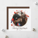 Un Navidad de invierno elegante coronaba con bayas rojas y pájaros lindos rodeados de estrellas doradas cuadradas tarjeta de vacaciones. La frase "Feliz Navidad" está fijada en un elegante tipo de letra caligrafía escrita a mano. Personaliza esta tarjeta de vacaciones cuadrada con tu foto y texto.