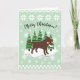 Navidades de chocolate Labrador Árboles eververdes y Navidades de copos de nieve tarjetas para los amantes de los perros que aman los labradores. Hermoso diseño de Silhouette de Chocolate Labrador con Sombrero Santa. Arboles de nieve y siempre verdes. Creado por Naomi Ochiai.