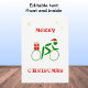 Esta tarjeta representa a un solo ciclista en verde navidad y con un gorra navidad. Se lleva un regalo en la parte trasera de la bicicleta, y hay tres copos de nieve dorados arriba. El saludo en rojo en la parte delantera es "FELIZ NAVIDAD", o esto puede cambiarse simplemente escribiendo en las cajas. En el interior hay un paquete de Navidades y copos de nieve. El mensaje se puede personalizar según se requiera, y se puede leer simplemente "Deseándote una Feliz Navidad y un Feliz Año Nuevo".