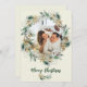 Envía elegancia de invierno con esta refinada tarjeta de vacaciones con una corona de flores de estilo nórdico de verduras holandesas y de temporada, acentuada por delicados detalles de vacaciones de copos de nieve de oro metálico. Las suaves texturas de acuarela y el diseño depurado evocan la moderna tipografía minimalista colorida y ramas de pino estilizadas Navidades con estética, lo que lo hace ideal para los amantes de la belleza subestimada con un toque festivo. La foto de su familia se encuentra en el corazón del diseño, enmarcada por follaje y un mensaje original impreso que puede ser utilizado tal cual o como personalizado. Perfecto para enviar Feliz Navidad y Año Nuevo con encanto escandinavo y gracia botánica.