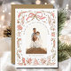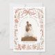 La tarjeta de Navidades de la tarjeta de vacaciones Coquette Navidades Family Photo Whimsical Gold Doodle ofrece su foto favorita con un moderno y caprichoso marco floral de coqueta en melocotón y oro con un arco de melocotón y personalizado con el texto de su personalizado y personalizado con el nombre de su familia. Perfecto para la familia y los amigos para los Navidades y las vacaciones. Diseñado por Evco Studio www.zazzle.com/store/evcostudio