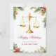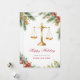 Tarjeta de vacaciones para Navidades de bufete de abogados Gold Justice Scale Pine Holly