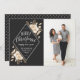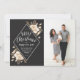 Este año se ha extendido la alegría con esta elegante tarjeta de fotos de vacaciones con flores de oro pintadas a mano con un toque vintage sobre un fondo oscuro. Dice "Feliz Navidad y Feliz Año Nuevo" en elegantes tipos de letra apilados. Ver nuestra tienda para más piezas en este diseño!