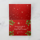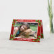 Tarjetas tradicionales de Navidades plegadas rojas y verdes con una gran plantilla de fotos en la parte delantera. Personalizar el mensaje de "Feliz Navidad" y "de nuestra casa a la tuya" con letras blancas en el frente, y añada un mensaje personal y una firma dentro. El diseño es el fondo rojo del cielo estrellado con hojas verdes y huecas. La plantilla de la foto está enmarcada en blanco. Añadir una imagen horizontal 4x6 o 5x7.