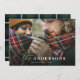 Con un elegante guión de efecto oro, tipografía audaz y respaldo de manto verde la tarjeta fotográfica de vacaciones seguramente creará la impresión correcta. Difundir alegría festiva para navidades y año nuevo