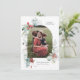 La tarjeta navideña de Navidades botánicos de arcos florales de color acuático Budget incluye una foto en arco acentuada por hermosas flores de acuarela de invierno.