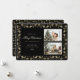 Elegante tarjeta de vacaciones de fotos en negro y oro con dos fotos y un caracol dorado sobre un fondo negro. Personalice fácilmente esta tarjeta de vacaciones con fotos favoritas, el nombre de la familia y el año.