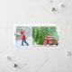 Tarjeta Festiva Navidades de fotografía de camiones rojos y bosque