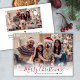 Moderno Cute Rojo Script Minimalista 2 Fotos Tarjeta navideña de escritura navideña. Esta plantilla festiva, simple, minimalista, caprichosa de dos tarjetas de felicitación de festividad fotográfica presenta el texto de bienvenida "Feliz Navidad", que está escrito en una foto de guión de caligrafía roja con letras a mano y giro rápido. En la parte posterior con la plantilla de mensaje de bienvenida con un pequeño doodle cardíaco y una plantilla de foto. Tarjeta de saludo de bonito para su familia y amigos en temporada de vacaciones para Navidades.