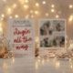¡Traiga un toque divertido a sus saludos de vacaciones con esta tarjeta única de Navidades estilo cheque de invitados! Diseñado con vibraciones de comedor retro y espacio para un mensaje festivo en la parte delantera, la parte trasera cuenta con múltiples spots fotográficos, perfectos para compartir tus recuerdos favoritos del año. ¡Una forma moderna e inesperada de sorprender a los amigos y a la familia esta temporada!