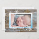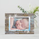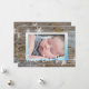 Agregue su imagen favorita de sus hijos o familia en el área personalizada. madera rústica bonito y copos de nieve en azul, dorado y blanco.