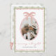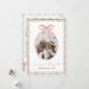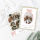 Añada un toque de encanto a sus saludos de vacaciones con esta tarjeta de Navidades rosados de inspiración vintage. La parte delantera muestra la foto de tu familia enmarcada en un diseño caprichoso y a mano coronado con un arco rosa dulce. La parte trasera ofrece espacio para cuatro fotos adicionales y un breve y sincero mensaje, perfecto para compartir los mejores momentos de tu año de una manera elegante y memorable
