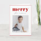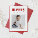 Añade una imagen retro a tu correo de vacaciones con esta audaz tarjeta de foto roja "alegre". La tipografía de inspiración vintage destaca, lo que le da a su estancia un aspecto alegre y nostálgico. Perfecto para familias, recién casados o padres mascotas que deseen una tarjeta única de Navidades fotográficos. El diseño limpio mantiene la atención en la foto, añadiendo un encanto festivo. Una gran opción para las tarjetas vacacionales modernas con personalidad y estilo vintage.