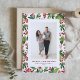 Feliz Navidad! Envíe sus más cálidos deseos de vacaciones con nuestra tarjeta de Navidades fotográficos de personalizable, que incluye un hermoso diseño acuático de bayas rojas de invierno y exuberante vegetación. Esta elegante tarjeta de Navidades le permite mostrar su foto favorita mientras agrega un toque personal con su mensaje personalizado. Perfecto para difundir la alegría festiva a la familia y amigos, esta tarjeta de Navidades fotográficos combina la belleza estacional con un saludo personalizado. Ideal para enviar Navidades a sus seres queridos cercanos y lejanos.
