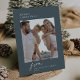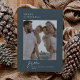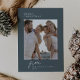 DARCY Blue Única tarjeta de vacaciones para Navidades de fotografía de la familia Vintage. Personalice la parte delantera de la tarjeta con una foto, su apellido y el año. Personalice la parte posterior con un saludo de vacaciones opcional o noticias familiares, y su apellido.