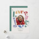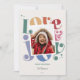 Perfecto para un saludo de Navidades merry y luminosos. Esta tarjeta de 1 Navidades de fotografía presenta una tipografía retro arco iris de amor y alegría en un estilo retro de mediados de siglo. Personalizar con su foto de vacaciones, saludo, apellido y año.